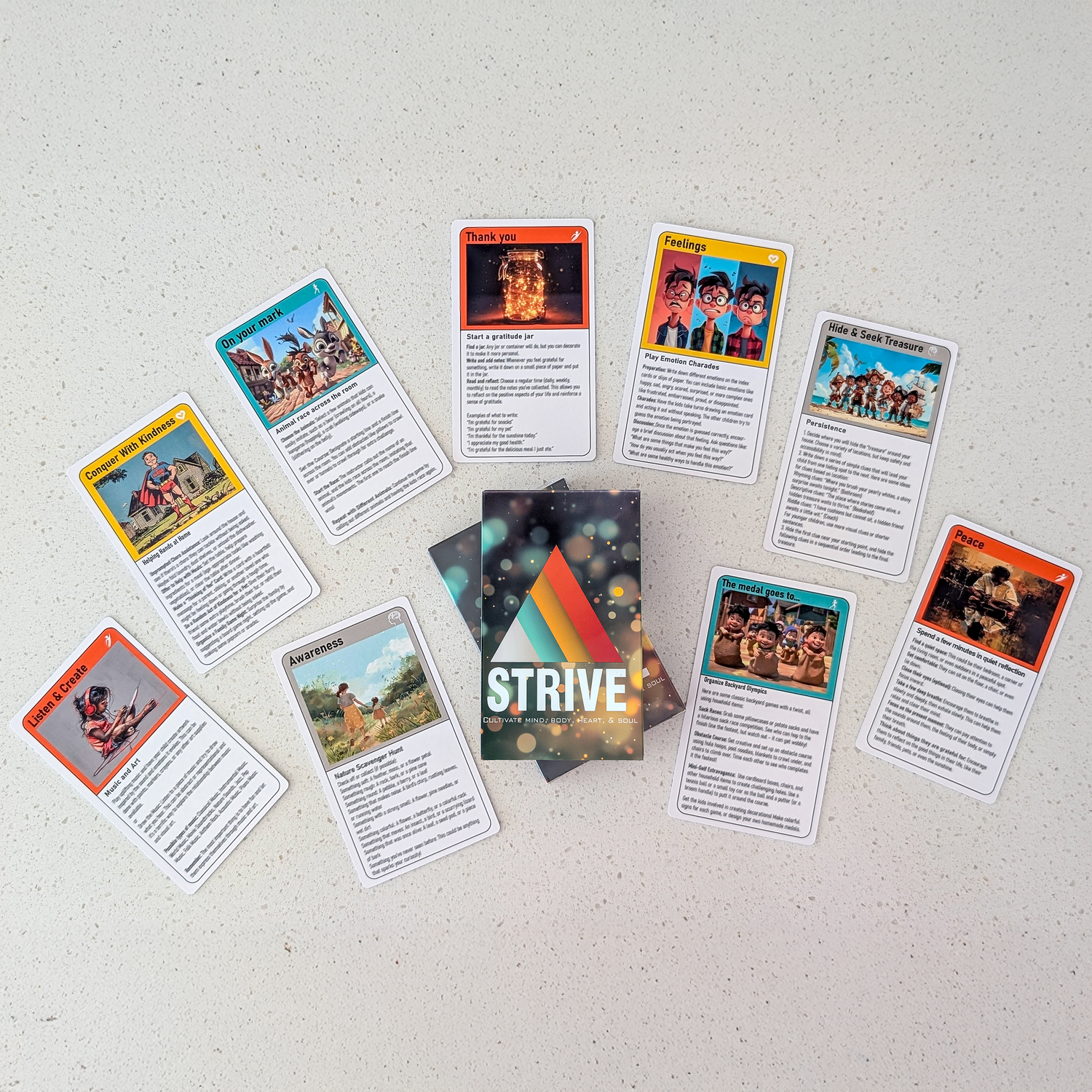 Two exciting card decks to enrich your life and the lives of your children! Discover hours of screen-free fun and learning with our beautifully designed card decks. The Children's Activity Cards offer 30 unique challenges to get kids moving, creating, and exploring. Meanwhile, the Activity Cards for Personal Growth provide 36 inspiring activities to nurture your mind, body, and soul. Both decks come with high-quality cards and a convenient storage box. Click to explore and find the perfect deck for you!